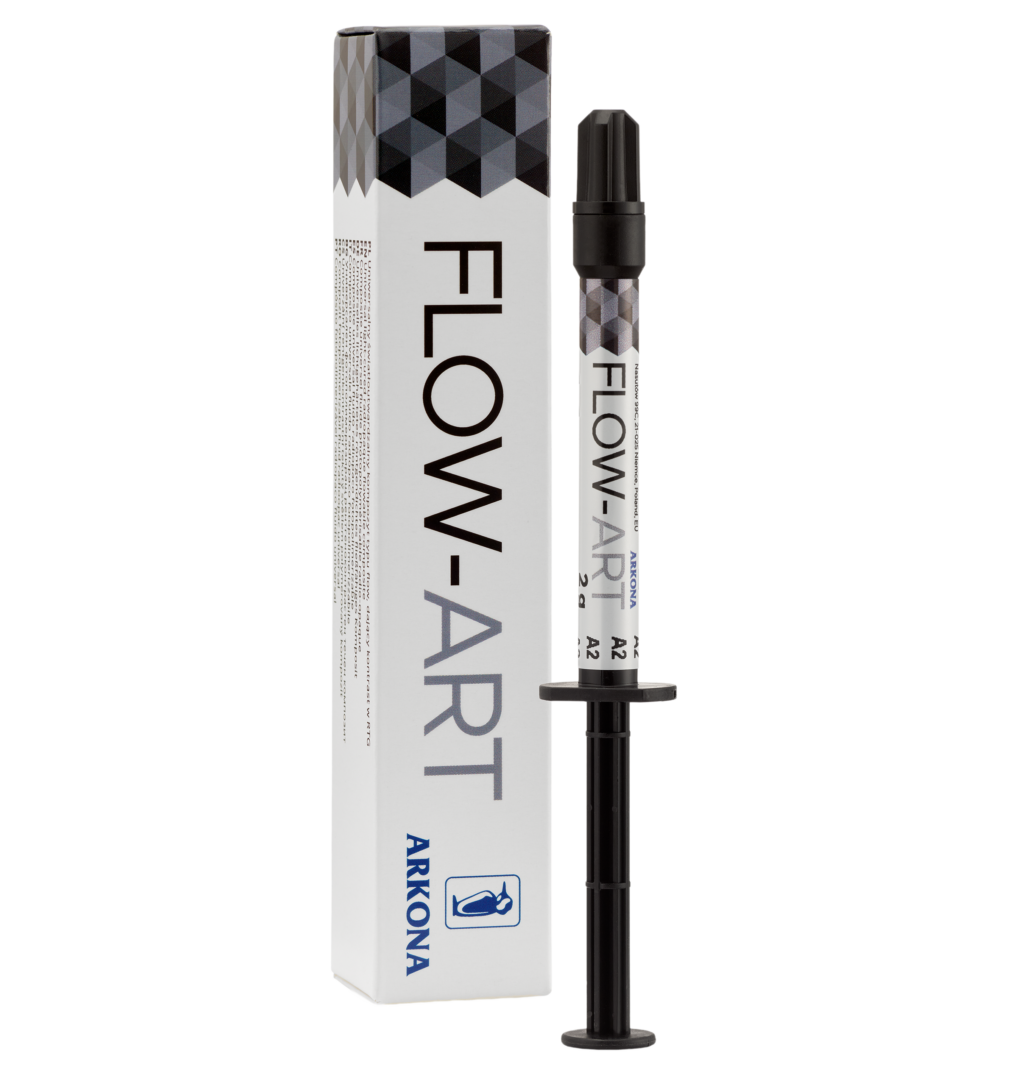 FLOW-ART to kompozyt o uniwersalnej konsystencji oraz o wyjątkowej wytrzymałości mechanicznej. Przewyższa standardy dla kompozytów płynnych, zbliżając się do parametrów kompozytów typu pasta.