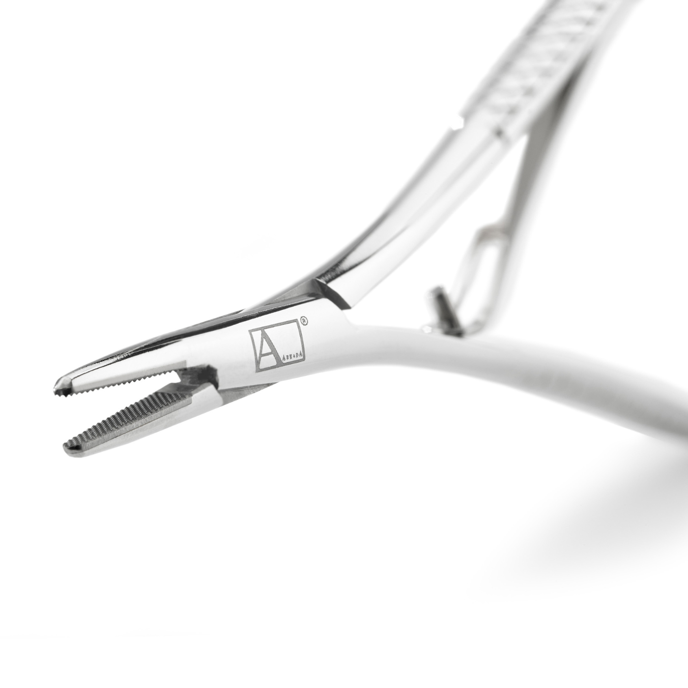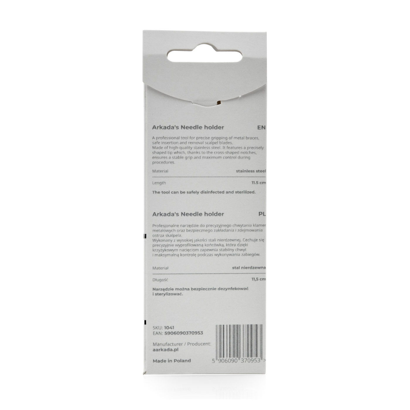 Profesjonalne narzędzie do precyzyjnego chwytania klamer metalowych oraz bezpiecznego zakładania i zdejmowania ostrza skalpela. Wykonany z wysokiej jakości stali nierdzewnej. Cechuje się precyzyjnie wyprofilowaną końcówką, która dzięki krzyżykowym nacięciom zapewnia stabilny chwyt i maksymalną kontrolę podczas wykonywania zabiegów.
